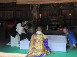 石手寺にて入棺体験のお手伝い